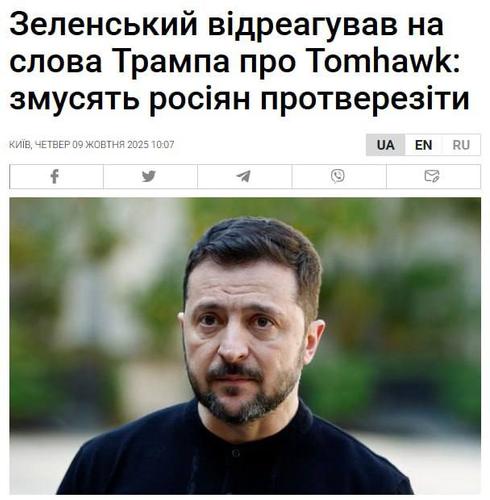 ▪️ По его мнению, поставки «Томагавков» могут «усадить Россию за стол переговоров».
