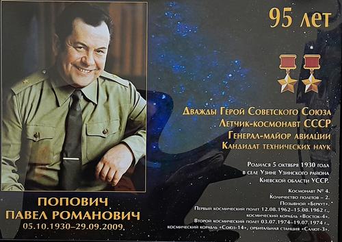 5 октября этого года исполнилось 95 лет со дня рождения лётчика-космонавта СССР № 4, дважды Героя Советского Союза, генерала авиации Павла Романовича Поповича. Накануне этой даты 4 октября в Звёздном городке состоялся торжественный вечер, на котором присутствовали дочери космонавта, его коллеги по работе, руководство городка, местные жители.